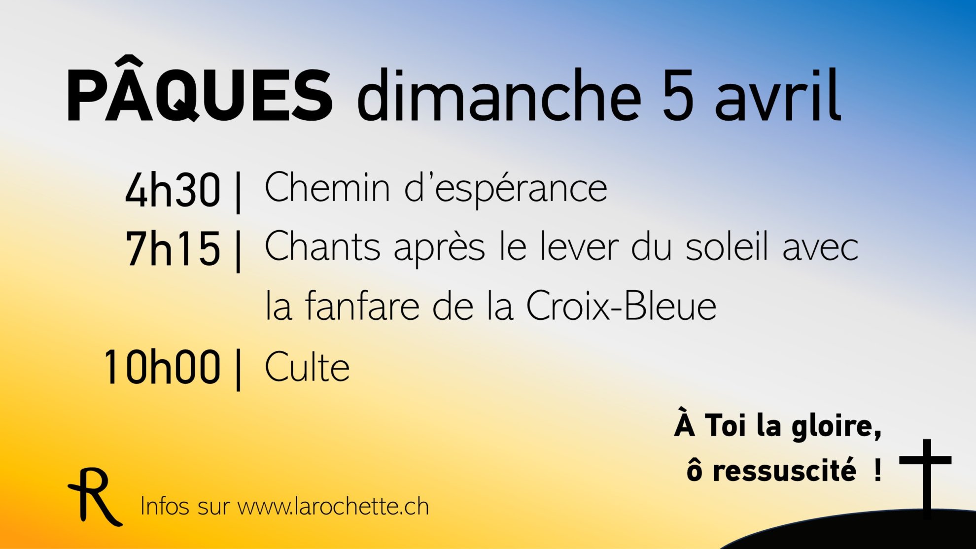 - dimanche de Pâques 5 avril: départ à 04h30 (avant le temps de chants au bord du lac).